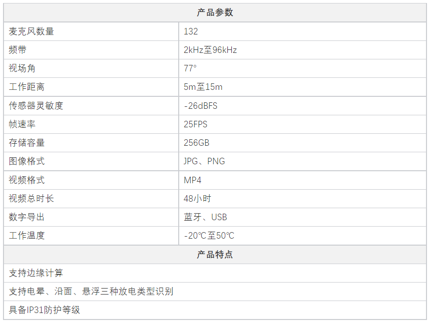 轻便小巧免拆设计,快捷作业,保障效率;集成132路高灵敏度麦克风,具备声学聚焦、声源追踪、AI算法加持与主动降噪技术,快速定位声源位置,精准区分局放类型。