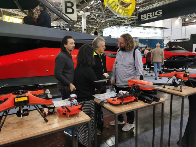 2024年1月20日至28日在杜塞尔多夫展览中心9展厅9c25展位,展出我们最新技术的防水无人机产品系列——水手4、渔夫Max、渔夫FD3防水无人机,全系列搭配4K云台防水相机及夜视仪相机、热成像相机等先进配件,特别是游艇海上航拍及水上运动航拍应用引起了众多客户的关注和赞誉。