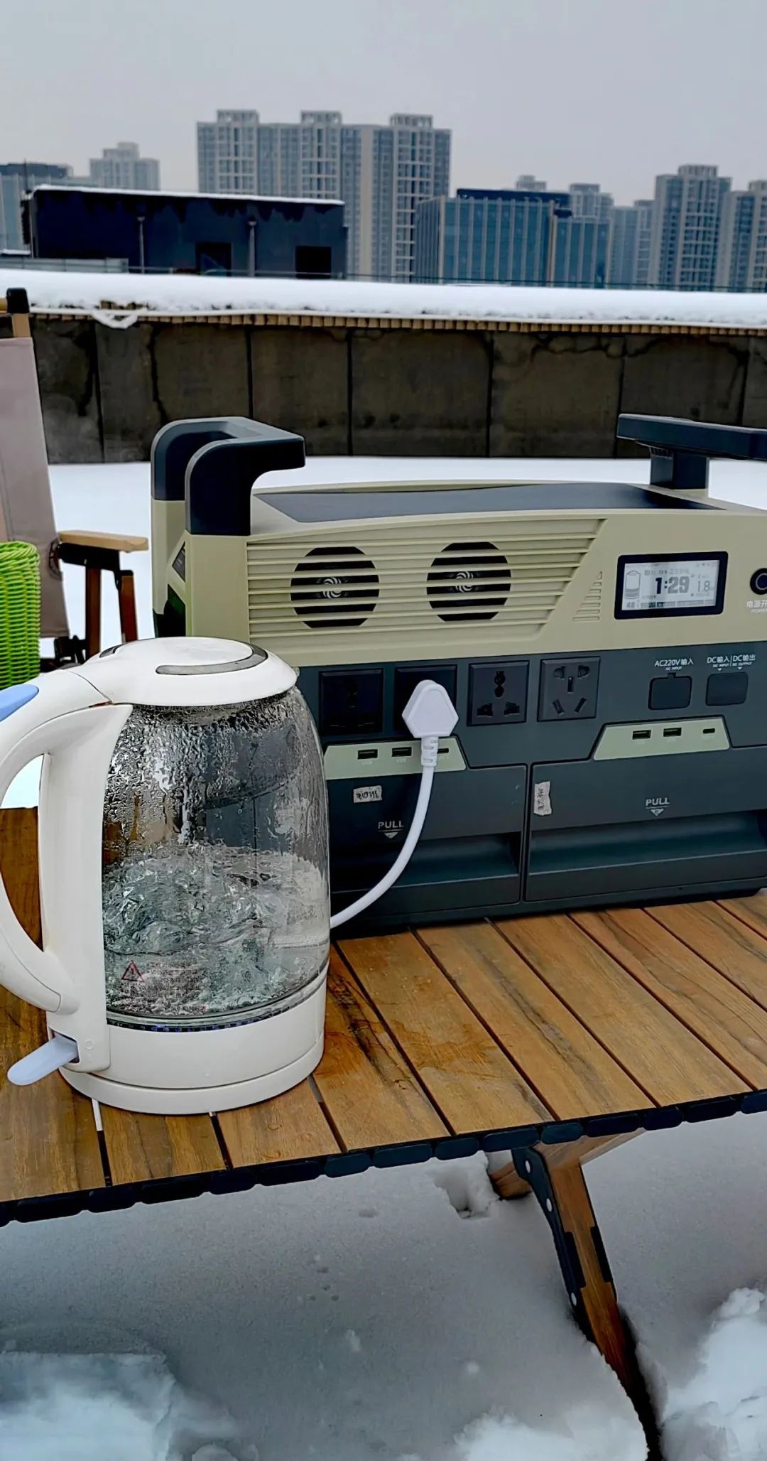 而正方科技开发的储能便携电站千乘动力QX3600在这样的温度条件下依然可以常使用,保证春节返程途中不断电,热水热饭随时做。