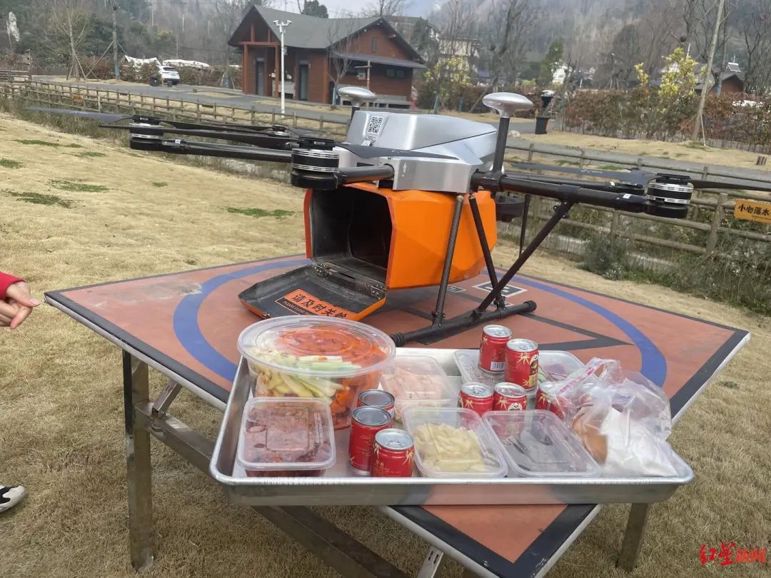 今年春节期间,成都各大文旅场所吸引大量游客驻足游玩,也带动餐饮行业发展。这个假期,游客吃喝玩乐出现一个新消费场景——无人机外卖在成都兴起。