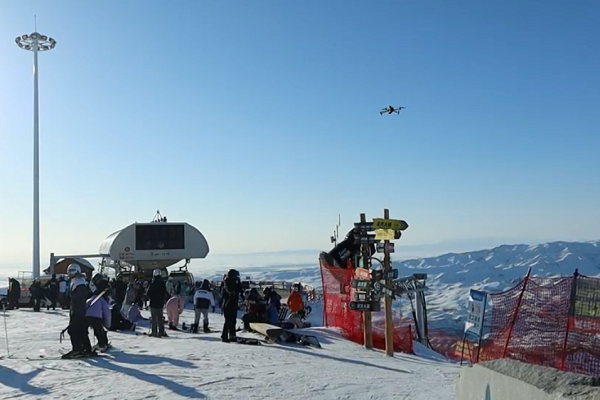 【平安守护】“硬核”高空喊话 阿勒泰市公安局出动无人机护航游客滑雪安全
