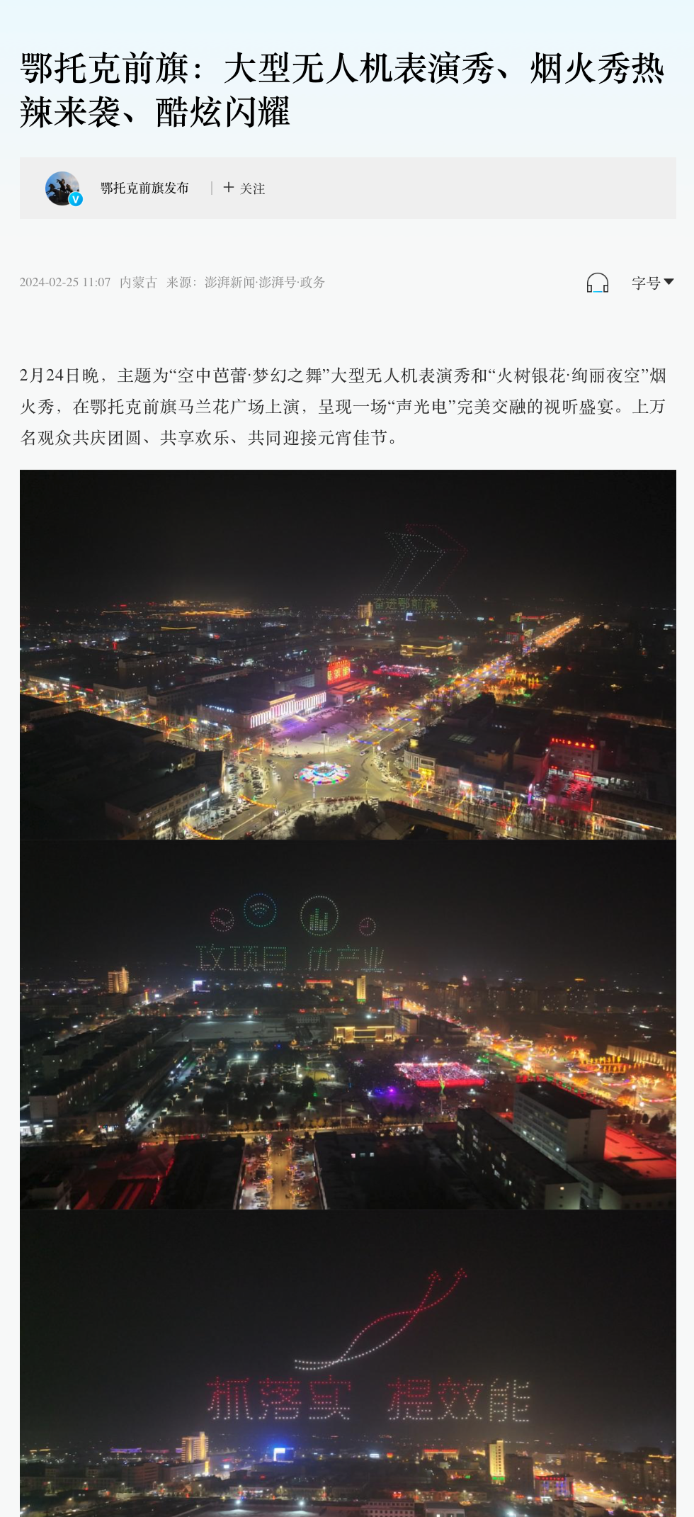 随着国家大力支持发展低空经济,传统年俗与现代科技结合的无人机表演备受关注,2024年春节与元宵节期间,众多城市的夜空比往年更加绚丽多彩。