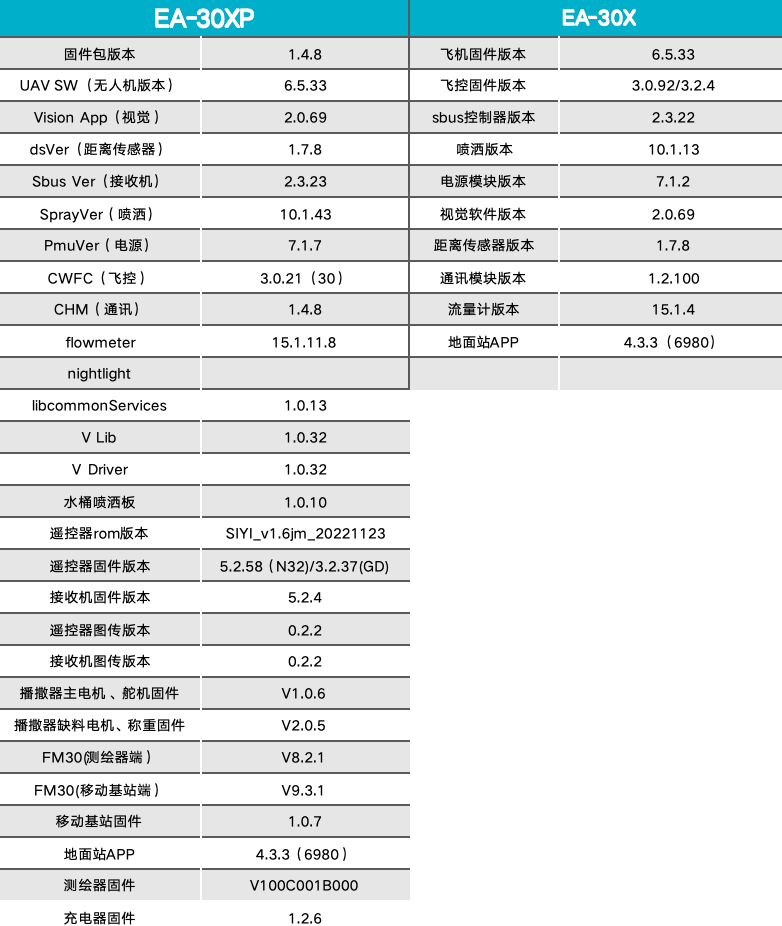 经过几个月的存储,软件版本已进行更新优化,飞行前请核对版本对照表