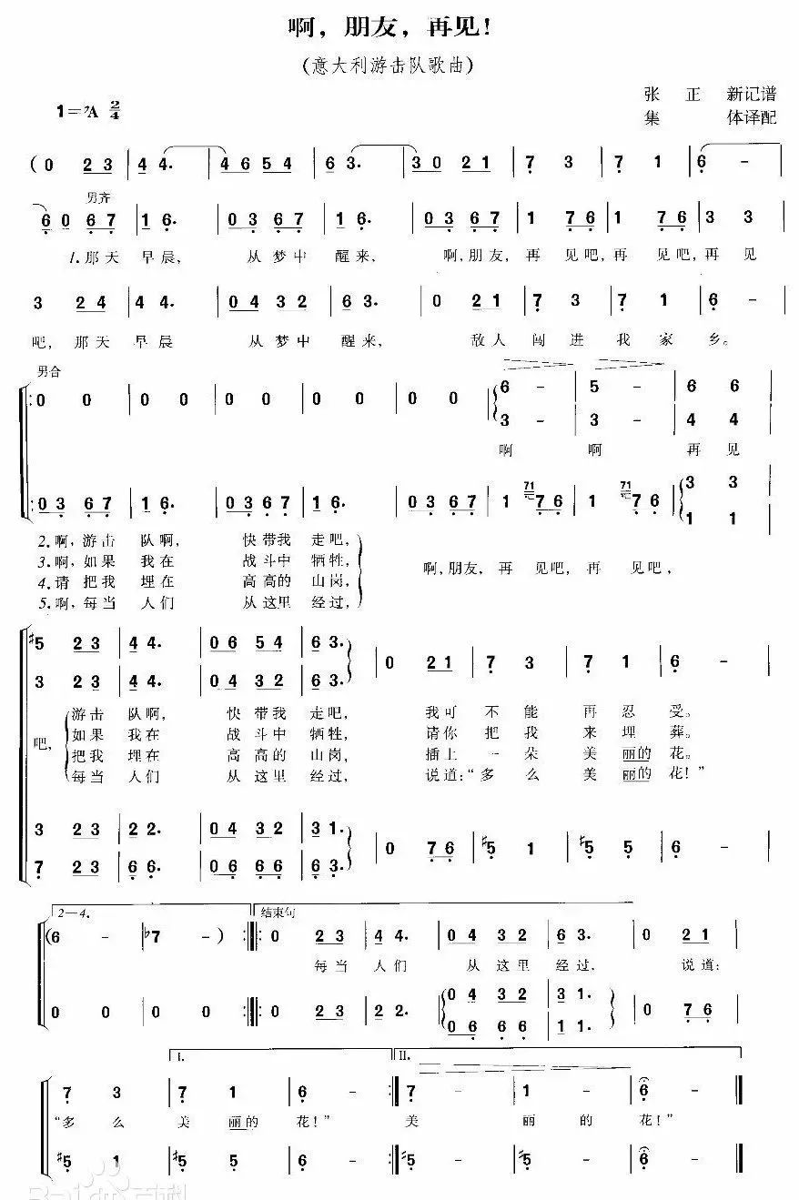 “请把我埋在高高的山岗 / 啊朋友再见吧再见吧再见吧!”