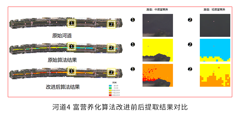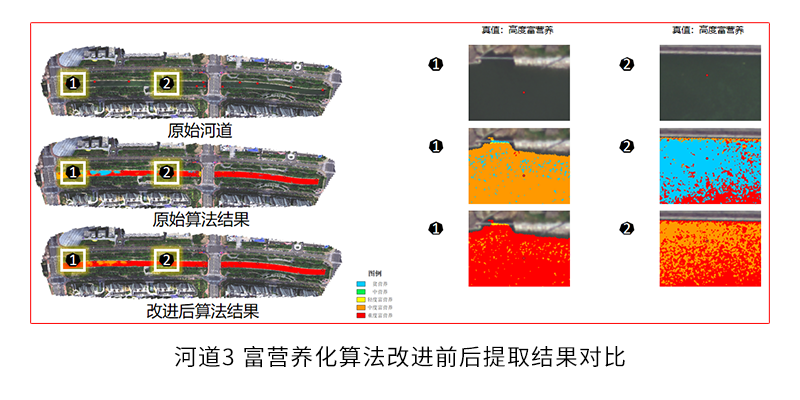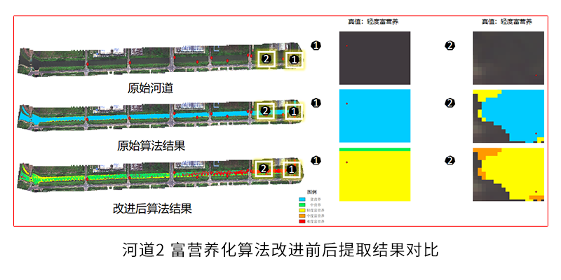 此外,自Yusense Map Plus V1.3.0版本开始,水体富营养化分析与黑臭污染分析算法已更新。其中富营养化算法优化后提升了对不同叶绿素a水平水体的适应性,满足不同富营养化程度水体分析。