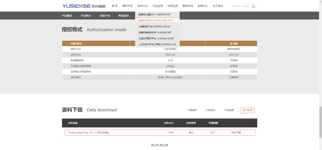 尚未安装软件的用户可至“长光禹辰官网(www.yusense.com.cn)-软件产品-Yusense Map Plus页面”下载最新版软件安装包,软件购买及授权事宜可联系禹辰市场人员了解开通。