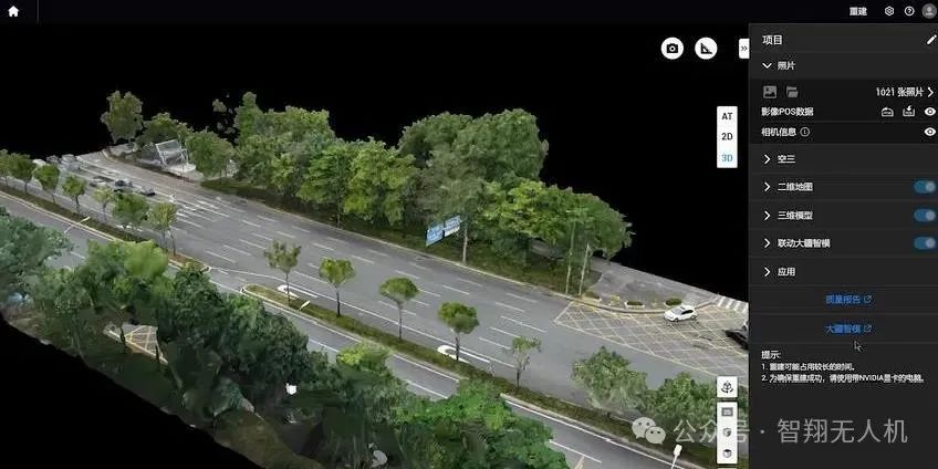 大疆智图能一键开启大疆智模,亦能一键生成模型处理的相关文件,方便用户后续使用大疆智模编辑模型。大疆智模是 DJI 首款智能三维模型编辑软件,界面简洁直观,操作简单易上手,助你高效完成模型修饰工作。它能准确识别模型中的悬浮物、破洞和车辆,一键修复模型网格,快速生成真实纹理,极大地简化模型编辑工作;搭配 DJI 行业无人机与大疆智图软件,可构建涵盖航测、建模、修模和分享的一体化解决方案,满足测绘、消防、应急、交通等领域的作业需求。