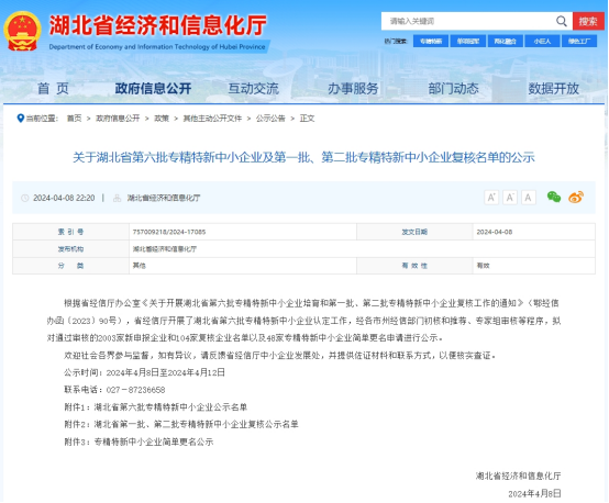 转载 2024-04-15 10:13 旭日蓝天 来源:旭日蓝天2024年4月8日,湖北经济和信息化厅发布了《关于开展湖北省第六批专精特新中小企业培育和第一批、第二批专精特新中小企业复核工作的公示》,旭日蓝天(武汉)科技有限公司成功获得“湖北省第六批专精特新中小企业”认定。