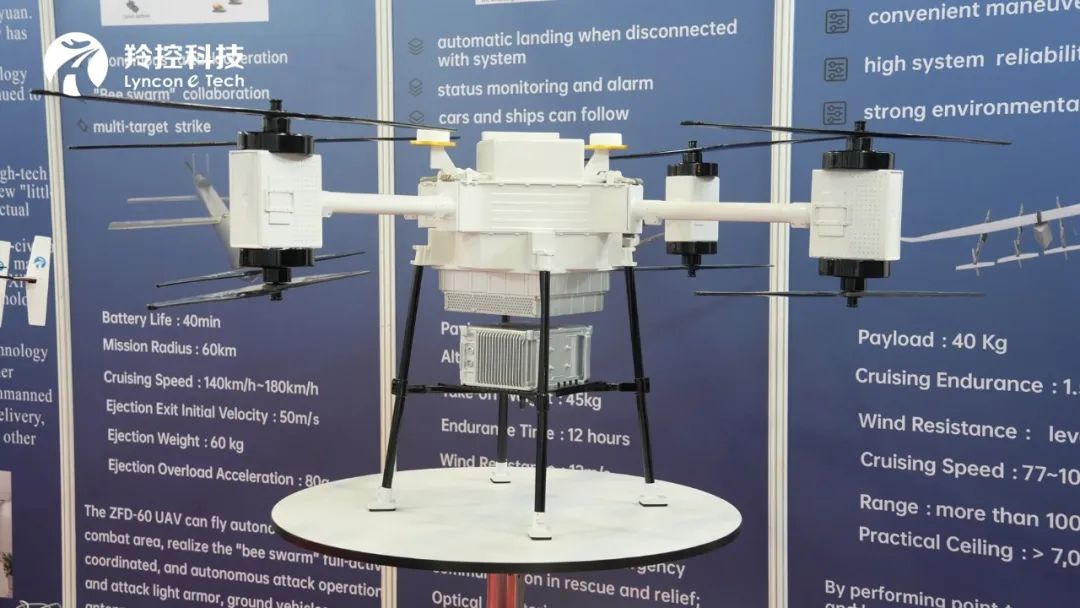 ▲垂起固定翼无人机FCD-90(缩比模型)