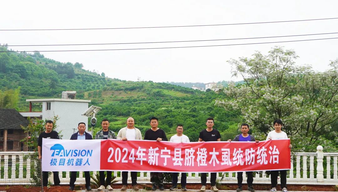 本次统防统治项目中,极目机器人EA-J100农用无人机因其出色的果树病虫害防治效果与山地作业能力成为首选推荐机型。苏州极目机器人科技有限公司的重要伙伴新宁极目无人机技术有限公司,作为项目核心防治任务实施单位,共投入211台无人机,统防全县117个村,防控面积达 30万亩,高效完成防治任务,赢得了农户的广泛好评及地方政府的高度赞扬。