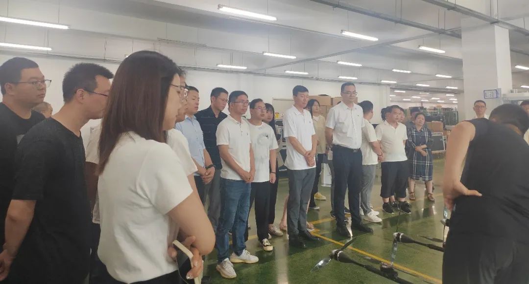 天和防务党员同志们深入总装车间,了解各型号无人机性能参数、应用场景,听取羚控科技在低空经济领域的技术优势以及市场应用情况。
