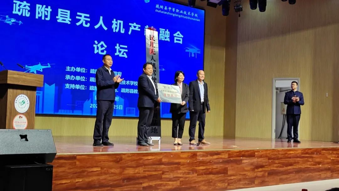 本次论坛中,疏附县县委王海荣书记、疏附县中等职业学校蒲世明书记、张建辉校长和天途董事长杨苡女士共同为疏附县中等职业技术学校民用无人机驾驶员执照培训基地揭牌,为新疆喀什地区提供专业无人机培训和技术服务。