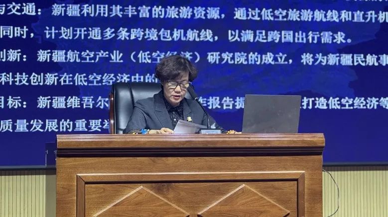 喀什大学物电学院副教授蔡东红在论坛上讲解了什么是低空经济、低空经济和无人机技术人才的关系、以及目前喀什低空经济发展现状等。