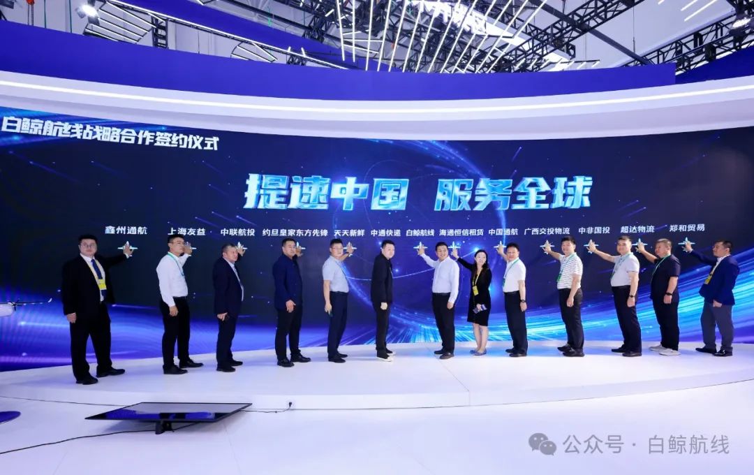 转载 2024-11-15 12:22 白鲸航线 来源:白鲸航线11月13日,白鲸航线W5000大型无人货运飞机珠海航展全球发布!此次发布,旨在向世界展示我们的技术实力和对未来航空市场的深刻洞察。当日紧随发布会,白鲸航线与一系列战略伙伴进行总计240架W5000签约仪式,这些伙伴包括中通快递、海通恒信租赁、中国通航、广西交投物流、中非国投、超达物流、郑和贸易、天天新鲜、约旦皇家东方先峰、中联航投、上海友益、鑫州通航。这些合作伙伴的加入,不仅为W5000飞机的市场推广注入了强劲动力,也标志着白鲸航线在全球航空市场中的战略布局迈出了坚实的步伐。