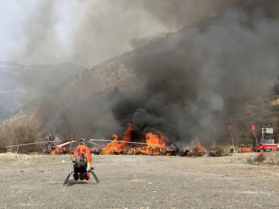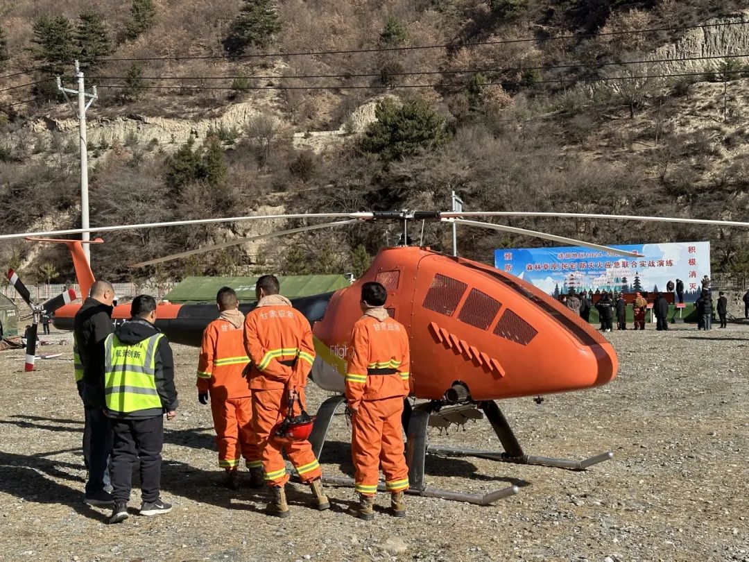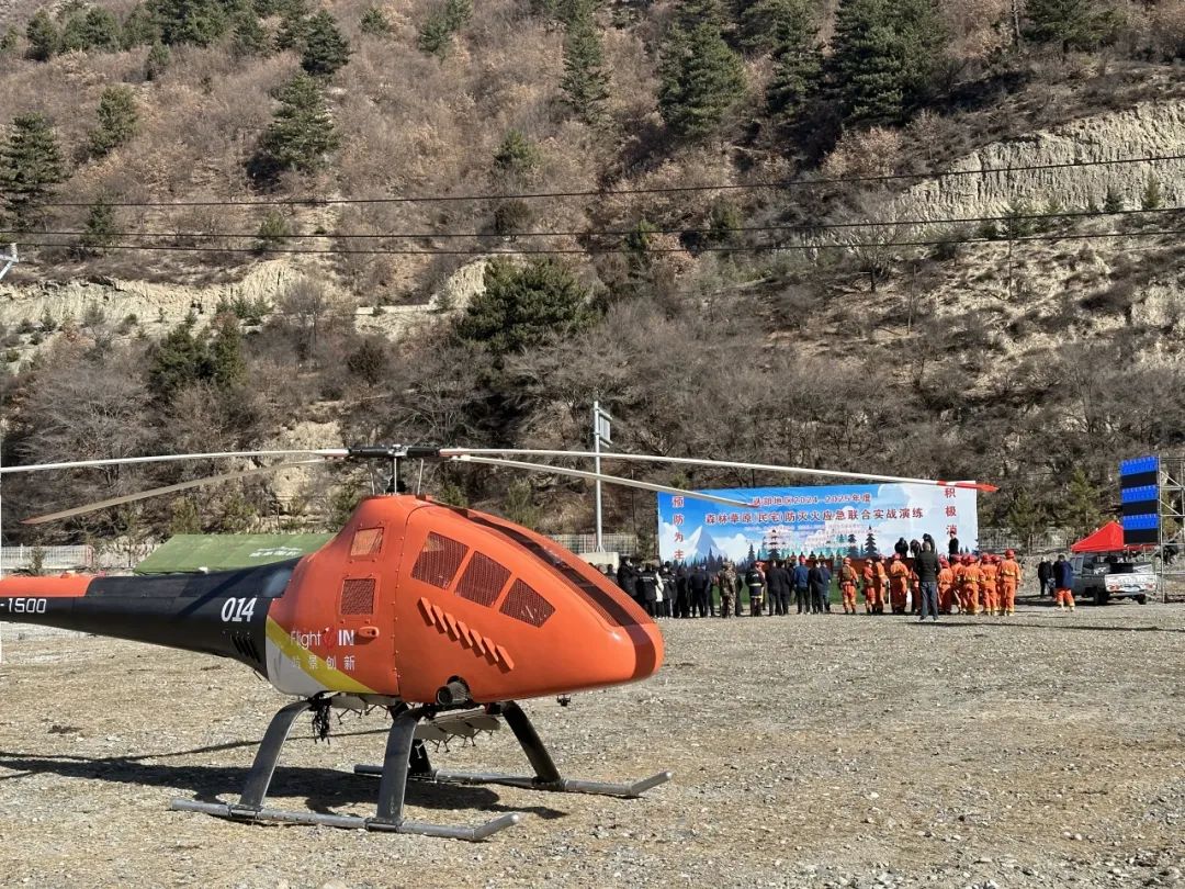 12月13日,陇南市森林消防支队迭部大队开展“2024-2025年度森林草原(民宅)防灭火应急联合实战演练”。航景创新FWH-1500重载无人直升机作为灭火先锋参与本次演练。