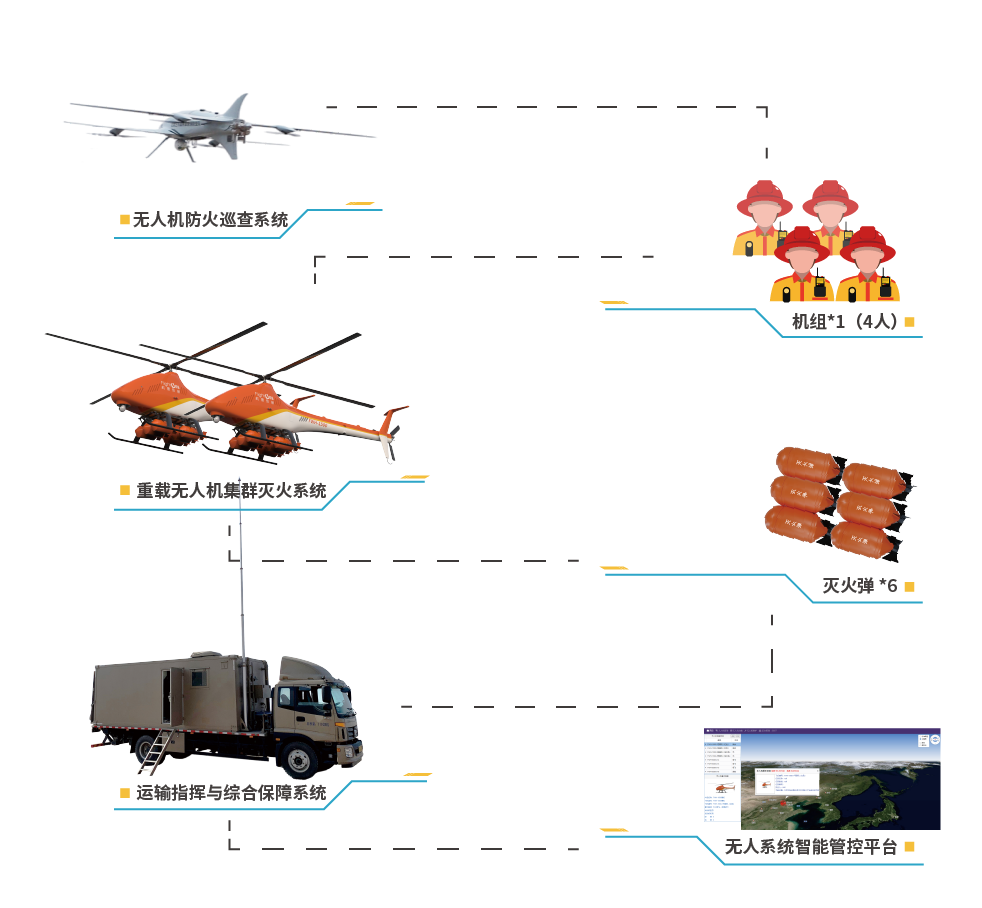 森林火灾是一种突发性强、破坏性大、扑救极为困难的灾害。“早发现、早处理”是森林防灭火最有效的应对措施,常态化人工防火巡察手段和现有地面灭火救援装备无法满足复杂地形环境下森林火灾及时发现、快速抵达和高效灭火的需求。