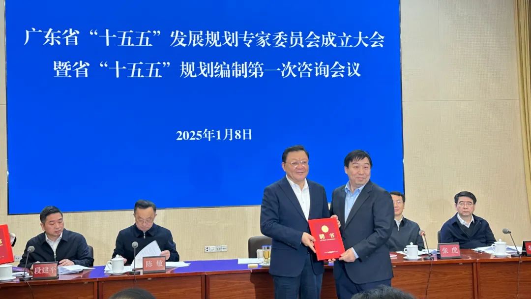 1月8日,广东省“十五五”发展规划专家委员会成立大会暨省“十五五”规划编制第一次咨询会议在广州召开。广东省省长王伟中出席会议并向参会委员颁发聘书,广东省委常委、常务副省长张虎宣读专家委员会名单。