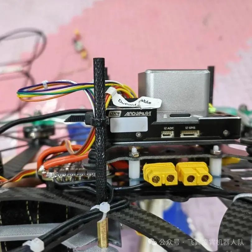 在紧张的备赛过程中,我们采用了雷迅赞助的CUAV X7+智能控制器。X7+采用了高性能的STM32H7系列处理器,并集成了高精度工业级传感器和超低温飘传感器。