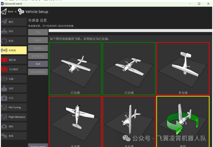 通过地面站,我们精确地调整了飞行参数,并对传感器进行了校准,包括罗盘、陀螺仪、加速器和PID,确保了飞行控制的精准性。