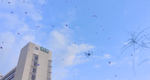礼炮迎空:彩色烟雾礼炮无人机升空,绽放绚丽“科技烟花”,同学们欢呼雀跃!