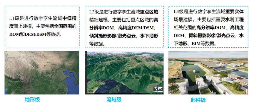 重点流域级数据场景——基于国产化自主研发的PIE-Lidar激光点云数据处理软件,支撑L2级数字孪生流域重点区域精细建模,主要包括重点区域的倾斜摄影影像/激光点云、水下地形等数据。