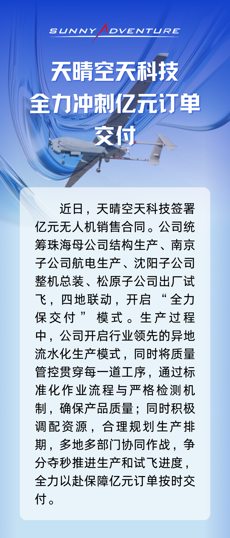 天晴空天科技全力冲刺亿元订单交付