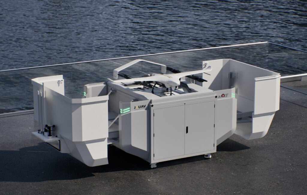 无人机网(www.youuav.com)援引外媒消息,无人机制造商和工业无人机解决方案提供商JOUAV推出了其第四代智能垂直起降无人机机库JOS-C700。