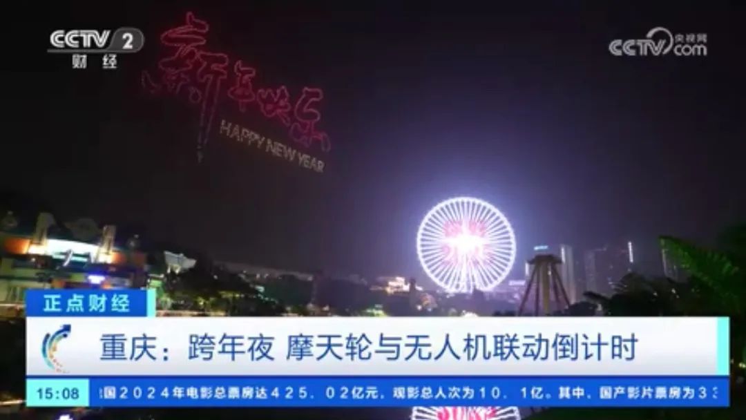 2024-2025跨年夜,无人机编队与摩天轮上演毫秒级高空光影联动倒计时,震撼场景获央视财经频道报道。