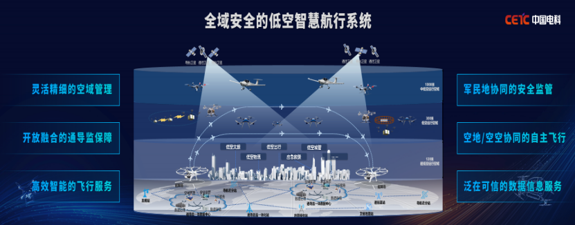 中国电科创新提出“全域安全的低空智慧航行系统”,着力打造灵活精细的低空空域管理、高效智能的飞行服务、空地/空空协同的自主飞行、开放融合的通导监保障、军民地协同的安全监管、泛在可信的数据与信息服务等六大能力体系,为低空经济健康有序发展保驾护航。