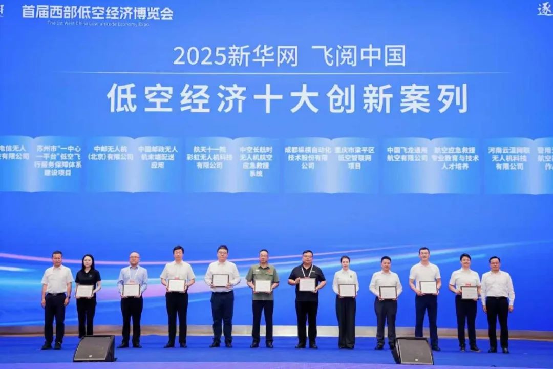 博览会现场,十一院下属彩虹无人机科技有限公司入选2025新华网“飞阅中国”低空经济十大创新案例并获授牌。