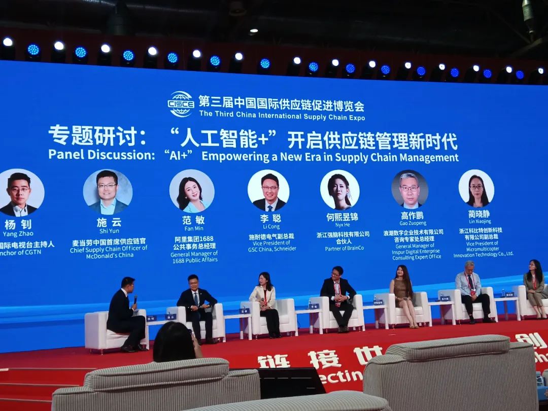 在第三届中国国际供应链促进博览会上,科比特创新科技有限公司副总裁蔺晓静与行业专家共同探讨了AI与供应链的深度融合。