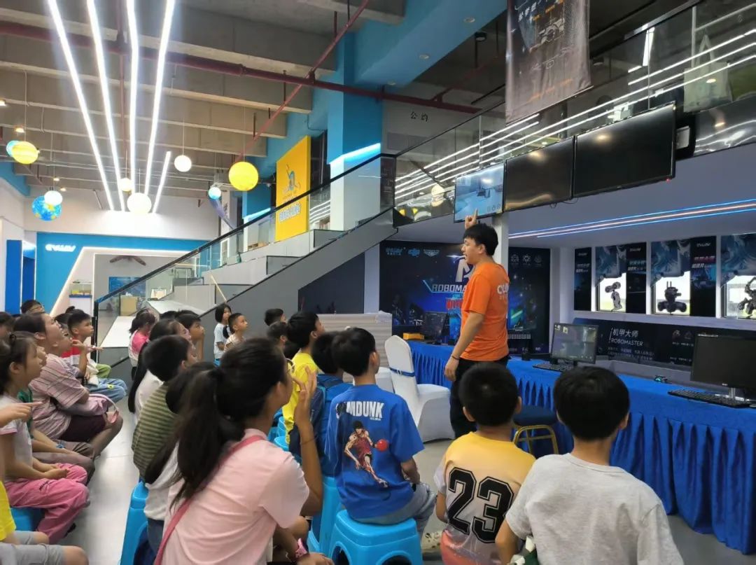在专业指导下,依次完成机甲大师编程操控、无人机足球竞技等前沿项目体验,通过沉浸式互动深化对智能控制技术的认知。