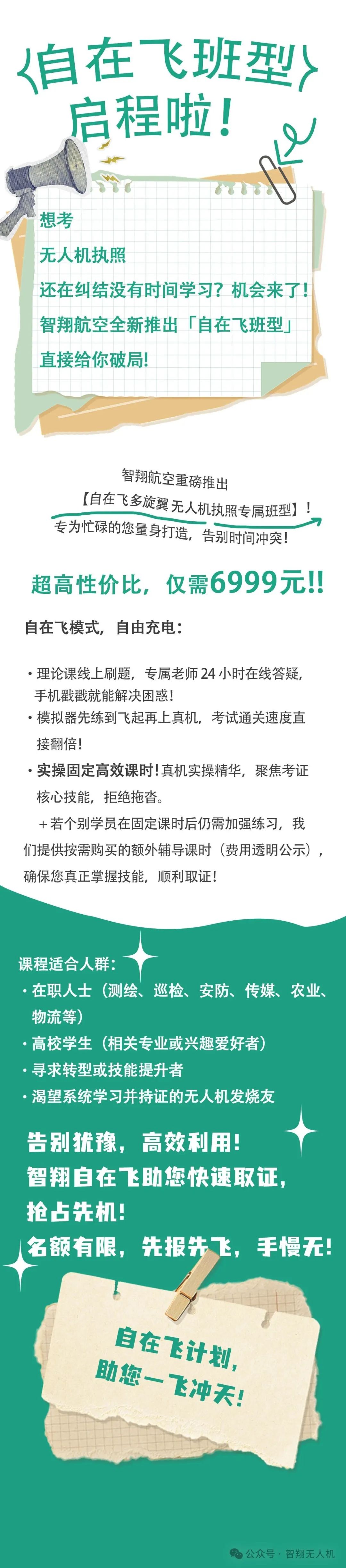 下班后,换个身份来飞行!固定课时高效学,智翔无人机自在飞班6999元!