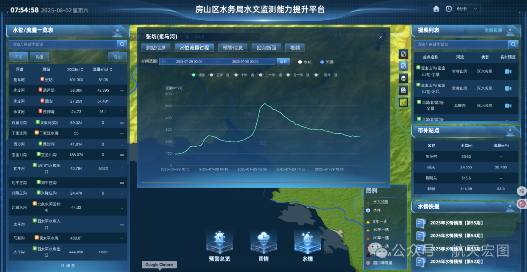 在上一轮强降雨应对过程中,平台充分发挥科技防汛的“幕后智囊”作用,重点关注拒马河、大石河等18条河流流量变化,构建起立体化、精准化的监测网络。