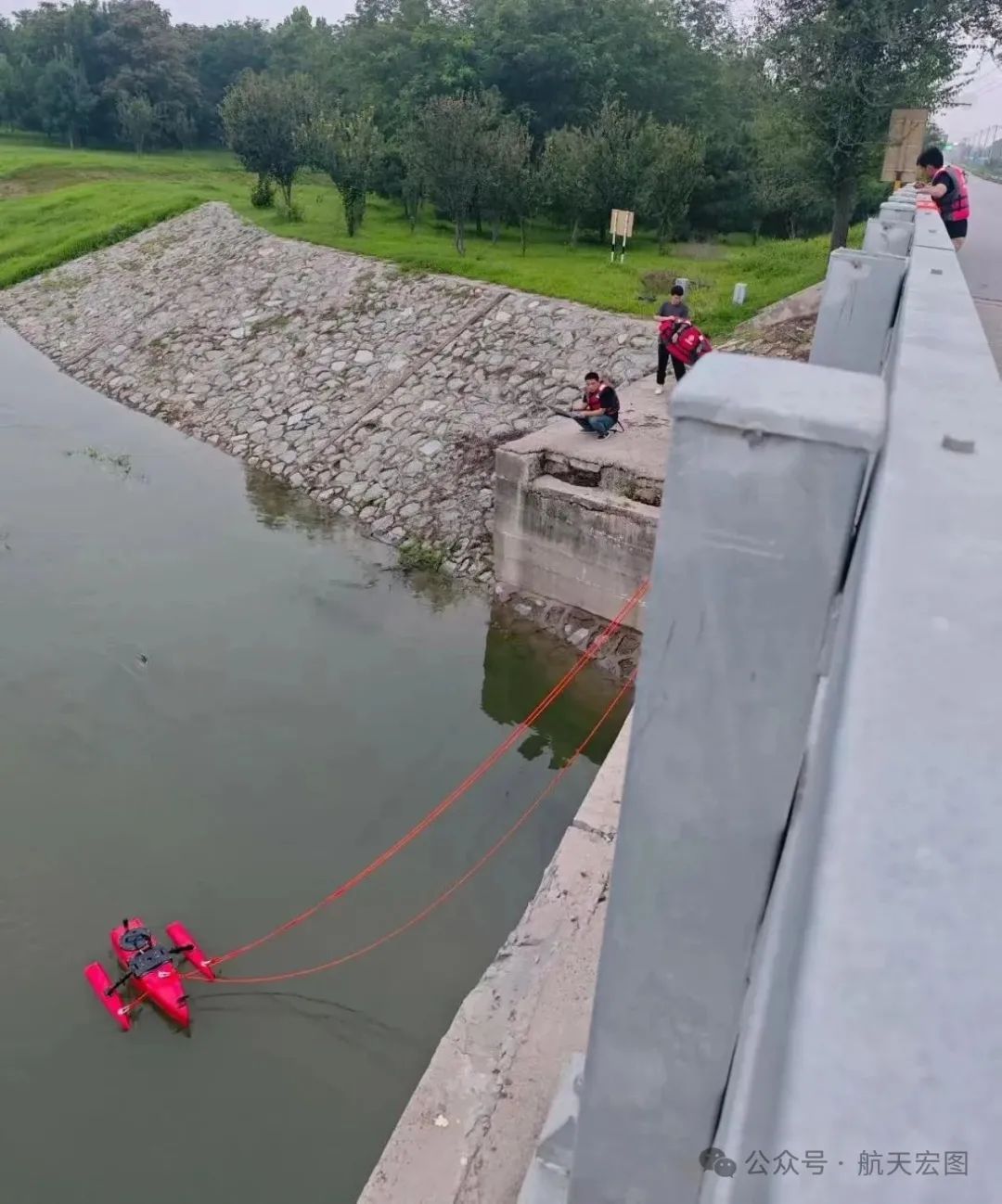 在东南章和窑上闸等重点区域,技术骨干们在河岸边仔细架设设备,反复校准仪器参数,严谨核对每一个测量数据;大石河夏村桥段,巡测队员熟练操控最新配备的“下水飞船”(无人船测流设备)驶入河道,实时采集断面流速、流量等关键数据;大石河琉璃河桥监测点,测量人员系着安全绳,在河道中规范安装调试水位计,确保数据实时传输至指挥中心......这些精准实时的水文数据,通过快速汇聚分析,为防汛指挥决策提供了至关重要的科学依据;一个个风雨中坚守的身影,用实际行动诠释了水文人的使命与担当。
