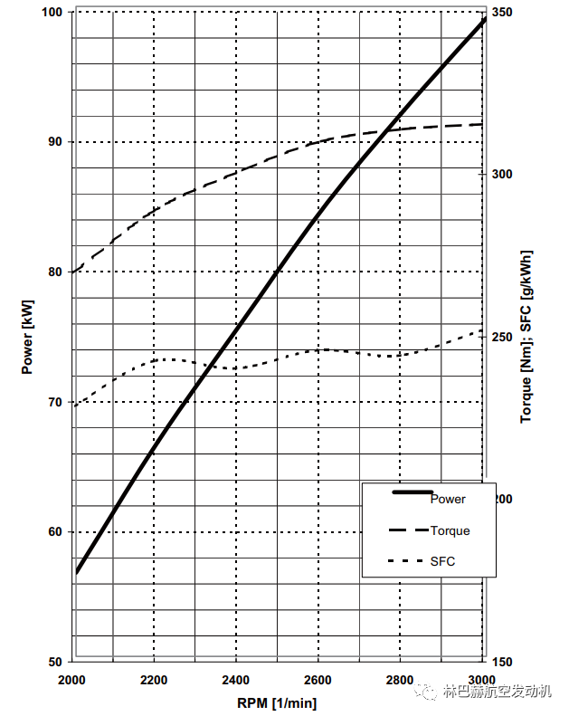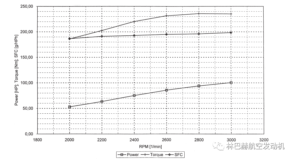 耗油率(平均约):节气门全开255g/kWh、节气门半开240g/kwh