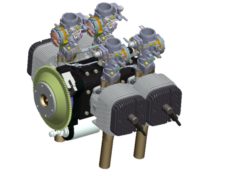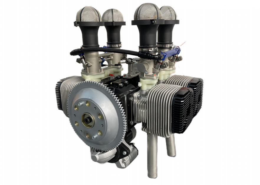 四缸水平对置,风冷,二冲程,电喷系统,混合润滑,适合推式和拉式装置