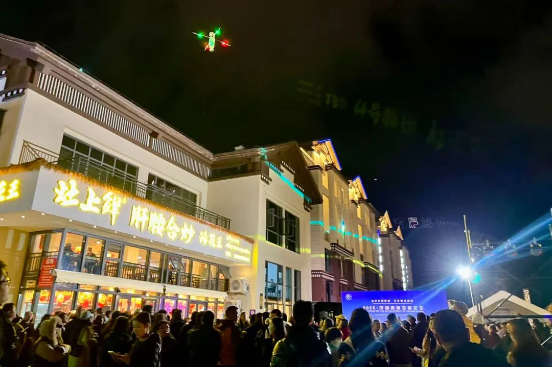 随着无人机飞过林芝“幸福夜市”,空中视角俯瞰下,商圈“新夜态”尽收眼底。“云圣智能祝2025中国西藏发展论坛圆满成功!”通过无人机搭载的喊话器,云圣智能为大会送上了海拔3000米以上的空中祝福。