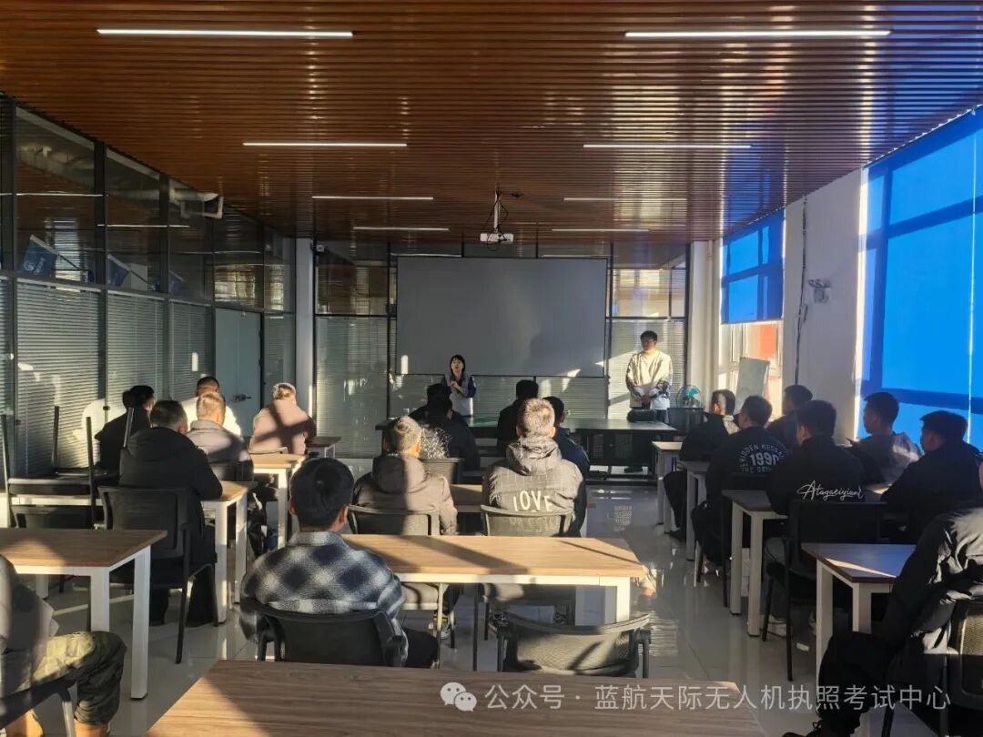 在开班仪式上,蓝航天际业务经理详细介绍了此次开班培训课程安排和考核要求,重点明确了飞行规则、安全常识等关键内容,并对培训期间的学习纪律提出了明确要求。