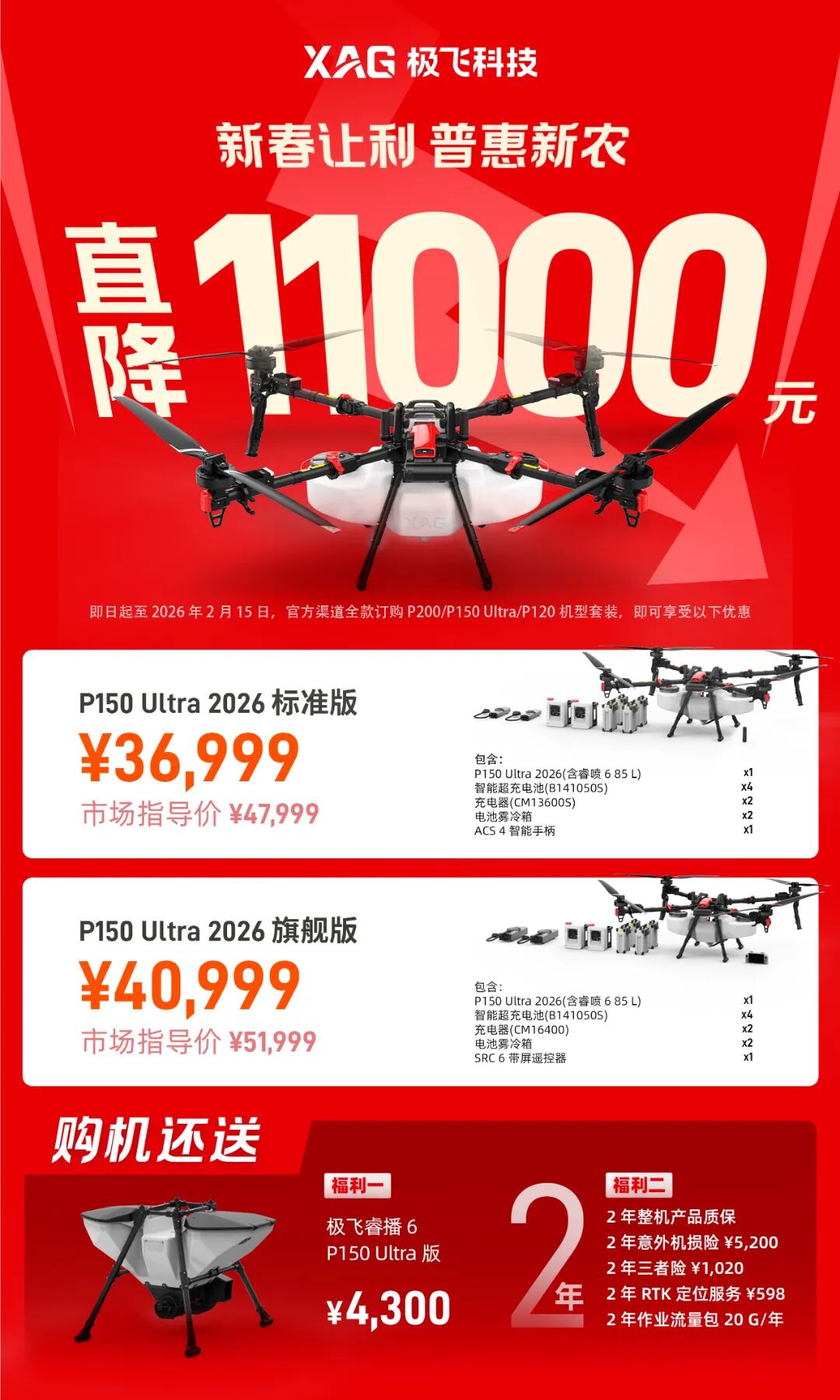 最高直降 18000 元,极飞 2026 款农业无人飞机钜惠再来袭!