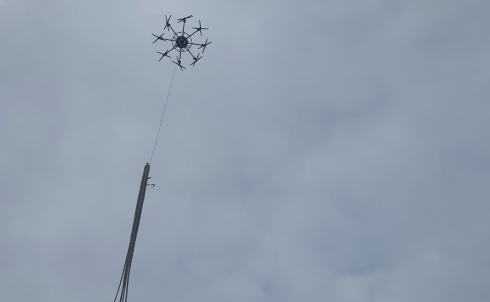 在现场演示中,容祺智能MAX320无人机成功完成了竹材空中吊运任务,展示了无人机在山地林区环境下的稳定性和实用性。