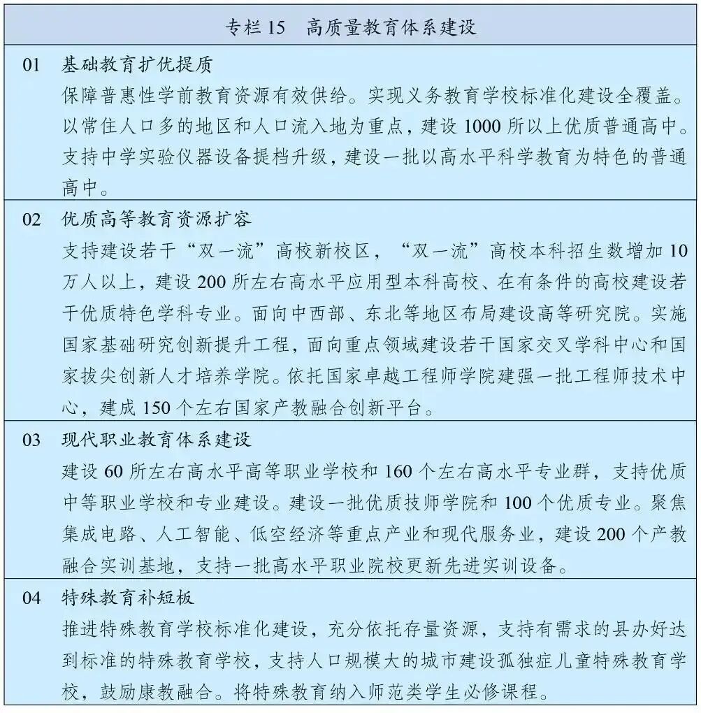 在基础教育阶段,“扩大普通高中办学资源”,继续“深入实施县域普通高中振兴计划”,明确了"高中阶段教育完成率达到88%"。