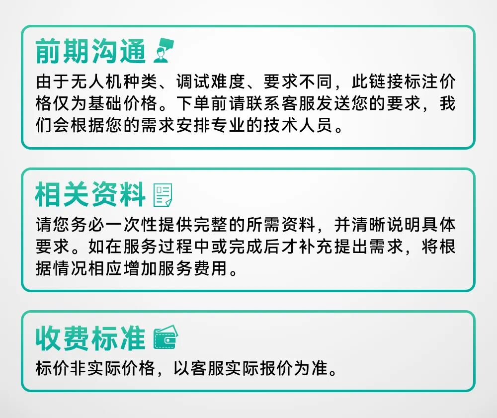 支持一站式无人机调试服务,为客户解决无人机精度校准、故障修复等问题,解决不会调、不会飞、没空域等难题,守护每台无人机安全飞行。