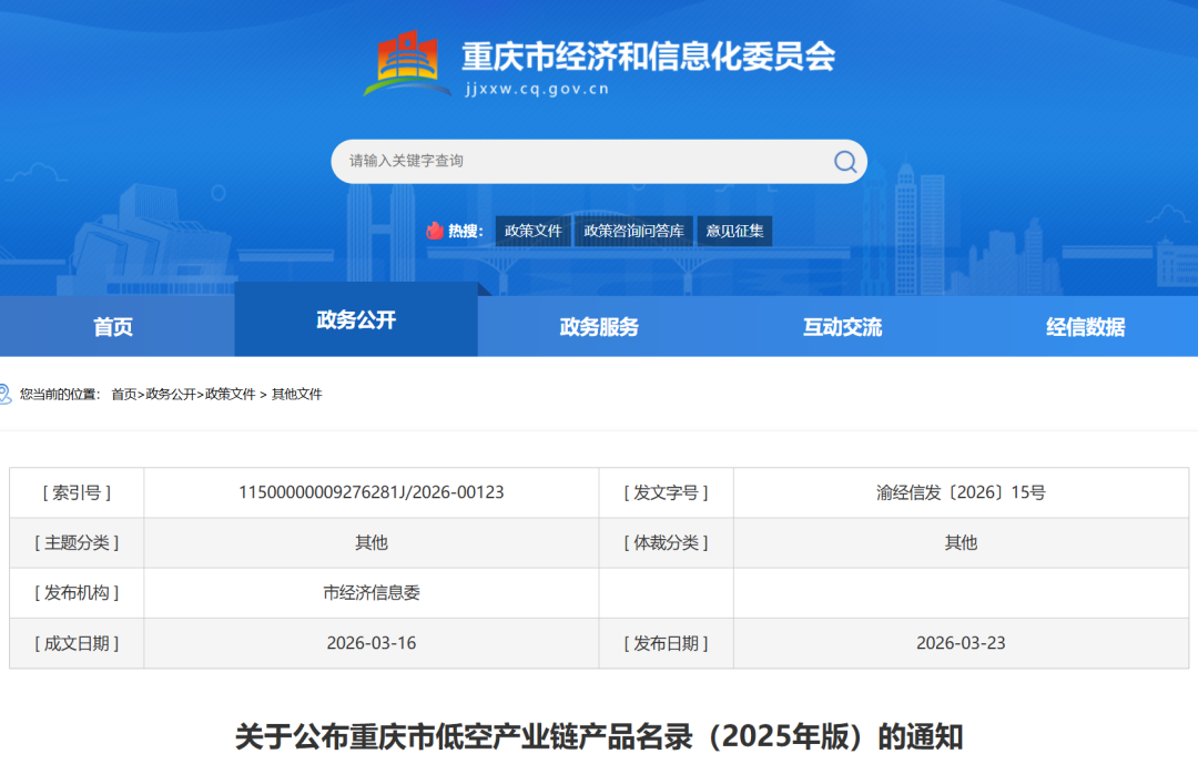 2026年是“十五五”开局之年,未来产业被写入“十五五”规划纲要草案。同时,继2024年、2025年之后,包括低空经济在内的新兴支柱产业今年第三次被写入政府工作报告,重庆也将“打造低空经济创新发展强市”写入“十五五”规划建议、纳入政府工作重点。