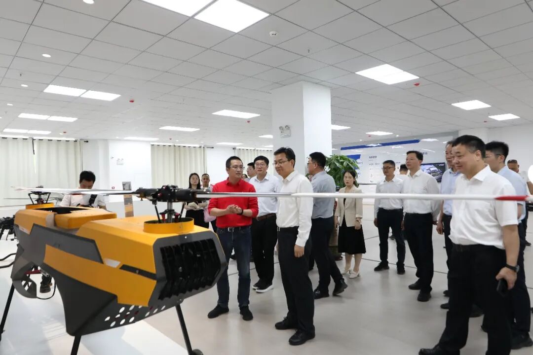 王雄飞市长一行首先参观了公司展厅,详细听取了关于公司发展历程、核心技术体系及行业应用案例的讲解。在公司自主研发的工业级无人机及智能巡检系统前,王市长驻足观看,仔细询问产品性能、国产化率以及在国内市场的竞争优势。得知容祺智能多款产品已实现关键零部件自主可控,并在应急、消防、能源、水利等领域成功落地应用时,王市长频频点头,对企业坚持走自主创新之路表示充分肯定。