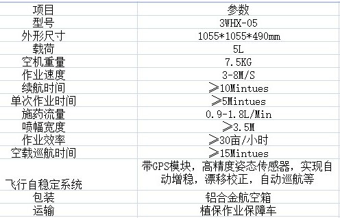 “农用植保无人机—开弓3WHX-05,农用无人机主要依靠作业人员远程遥控操作进行施药,作业效率一般为每小时30-40亩,效率是人工作业的5倍,降低了环境污染和对人员的伤害。同时与传统手工作业相比,使用农用无人机大大提高了药液的附着率和穿透性,雾化更均匀,还可避免施药人员中毒现象发生,农用无人机施药替代人工作业显得更具必要性。可广泛应用于小麦、水稻、果树、棉花等农作物的病虫害防治以及施药作业。