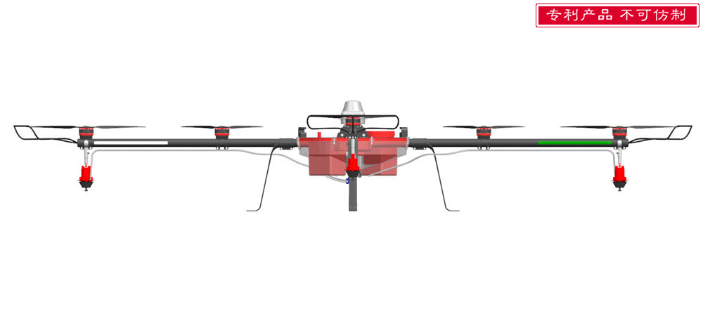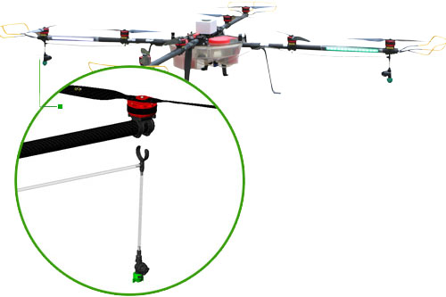 专业的喷洒结构,喷头置于螺旋桨正下方,高效利用了螺旋桨下洗气流,增加药剂穿透性,并防止农药漂移,提高施药效果。