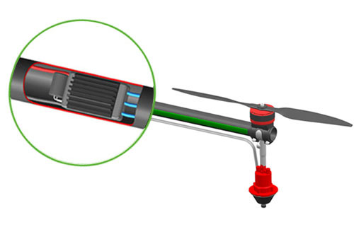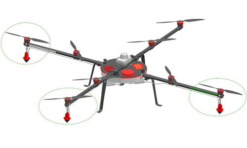 采用高效率马达与螺旋桨及首创高品质环形电调组成的动力系统,使用时通过机臂管道冷却,防水防尘,低干扰,低噪音,运行顺畅,使用寿命长。