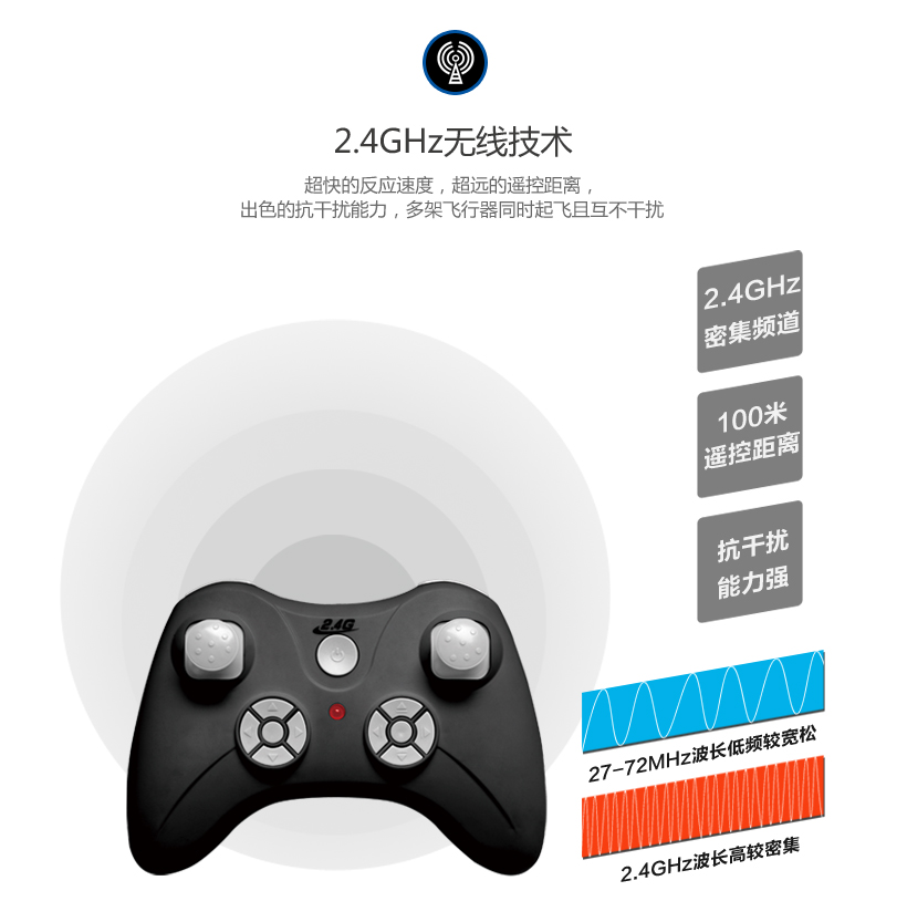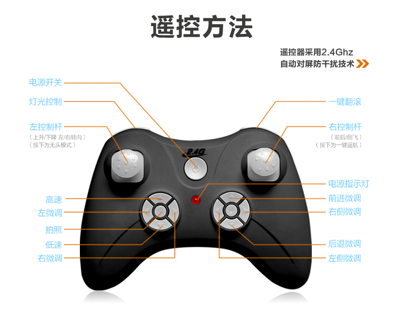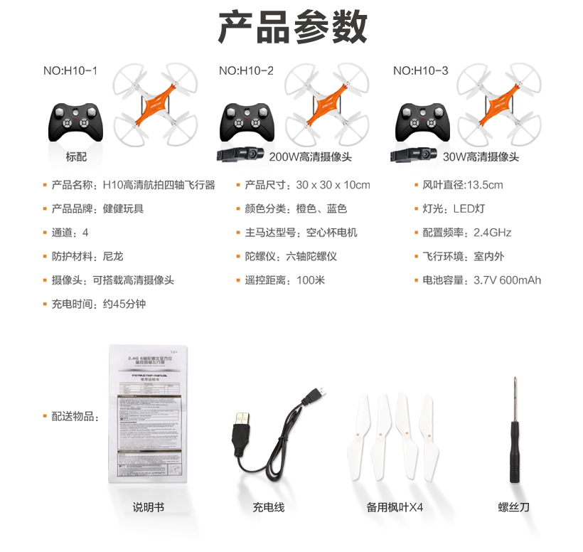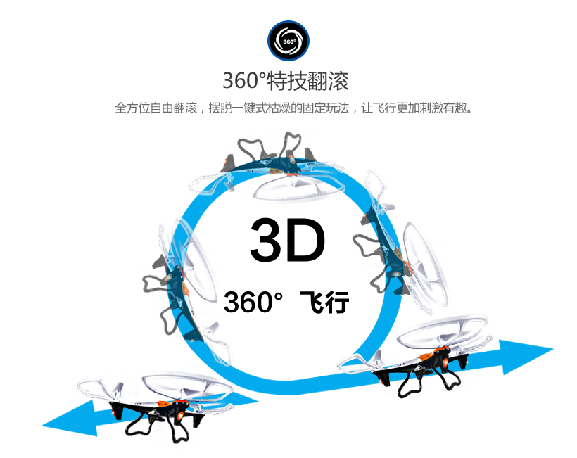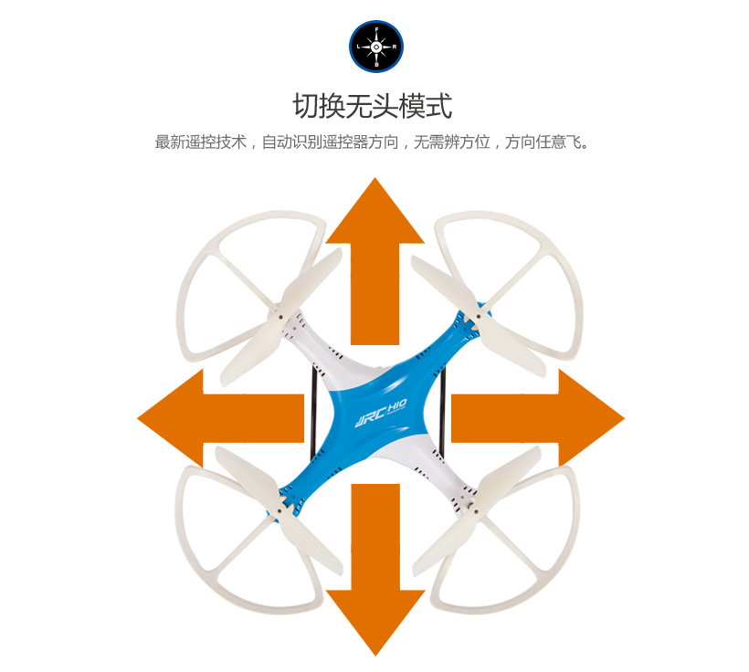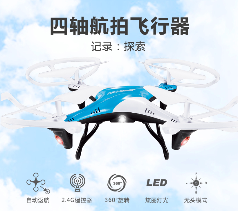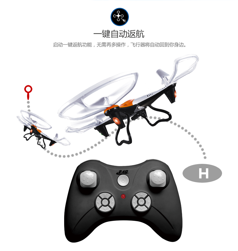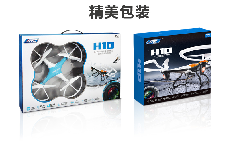 H10可以说具备了你心目中四轴的所有特色:2.4G遥控技术,重力感应功能,特技飞行 技巧,高清航拍,造型设计卓宇不凡,它不仅是敢于翻滚的飞行探险家,还是具有航拍功能的空中记录者。