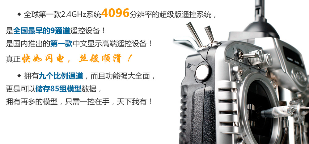▲高速度、高分辨率,优化的2.4GHz PCMS 4096制式 “快如闪电,丝般顺滑”